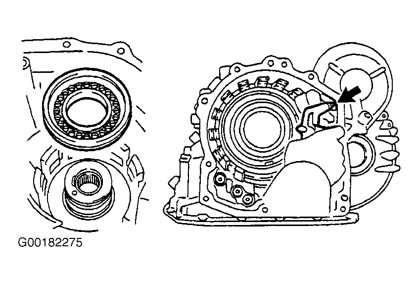 - Remove rear planetary sun gear from transaxle case. Remove thrust needle roller bearing and thrust bearing race from rear planetary sun gear. Remove thrust washer No. 2 from rear planetary sun gear. Remove one-way clutch and thrust bearing from transaxle case. Remove inner race from one-way clutch. See Fig 14.
