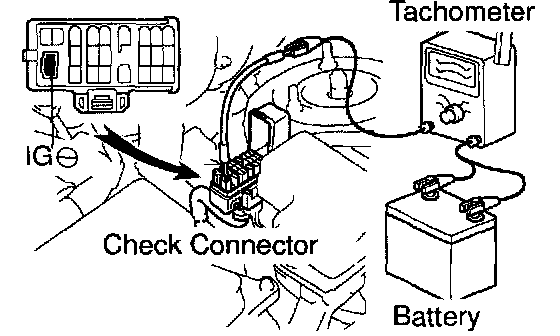 a. Connect tachometer test probe to terminal IG (-) of the check connector.