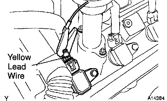 b. Connect the tester probe of a timing light to the yellow lead wire of the ignition coil connector for No.1 cylinder.