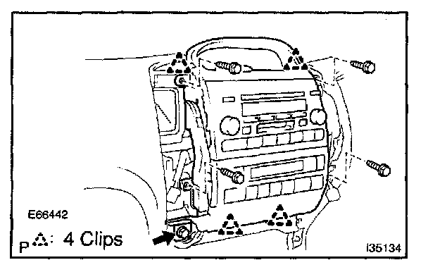 a. Loosen the bolt and remove the 4 bolts, the 4 clips and the integration control & panel assy.