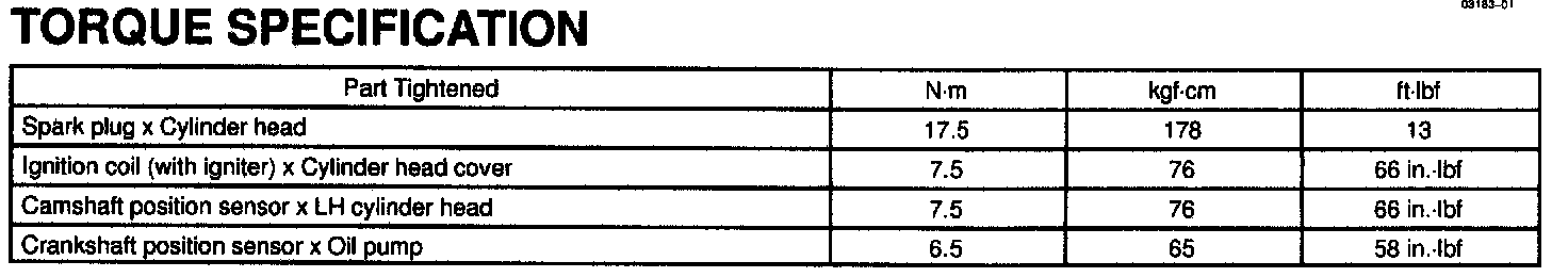 Torque Specification: