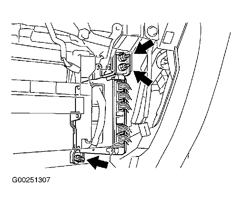 - Disconnect 5 ECM connectors from ECM. Remove 3 nuts and ECM. See Fig 4. Remove screws and ECM brackets from ECM.