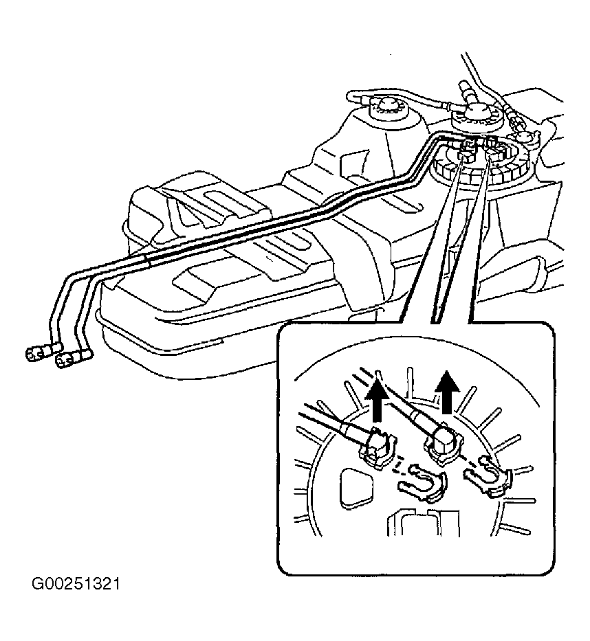 - Check that there is no dirt around quick connector. Remove 2 fuel tube joint clips and pull out fuel tank tubes. See Fig 6. If stuck, turn carefully to free up, then disconnect.
