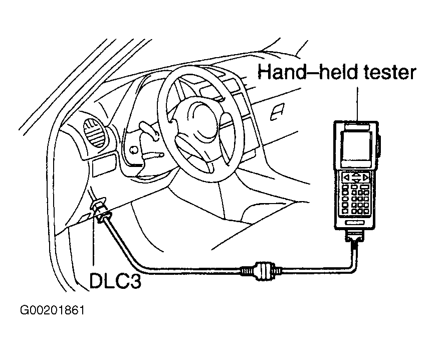 1. Connect the hand-held tester to the DLC3. See Figure.