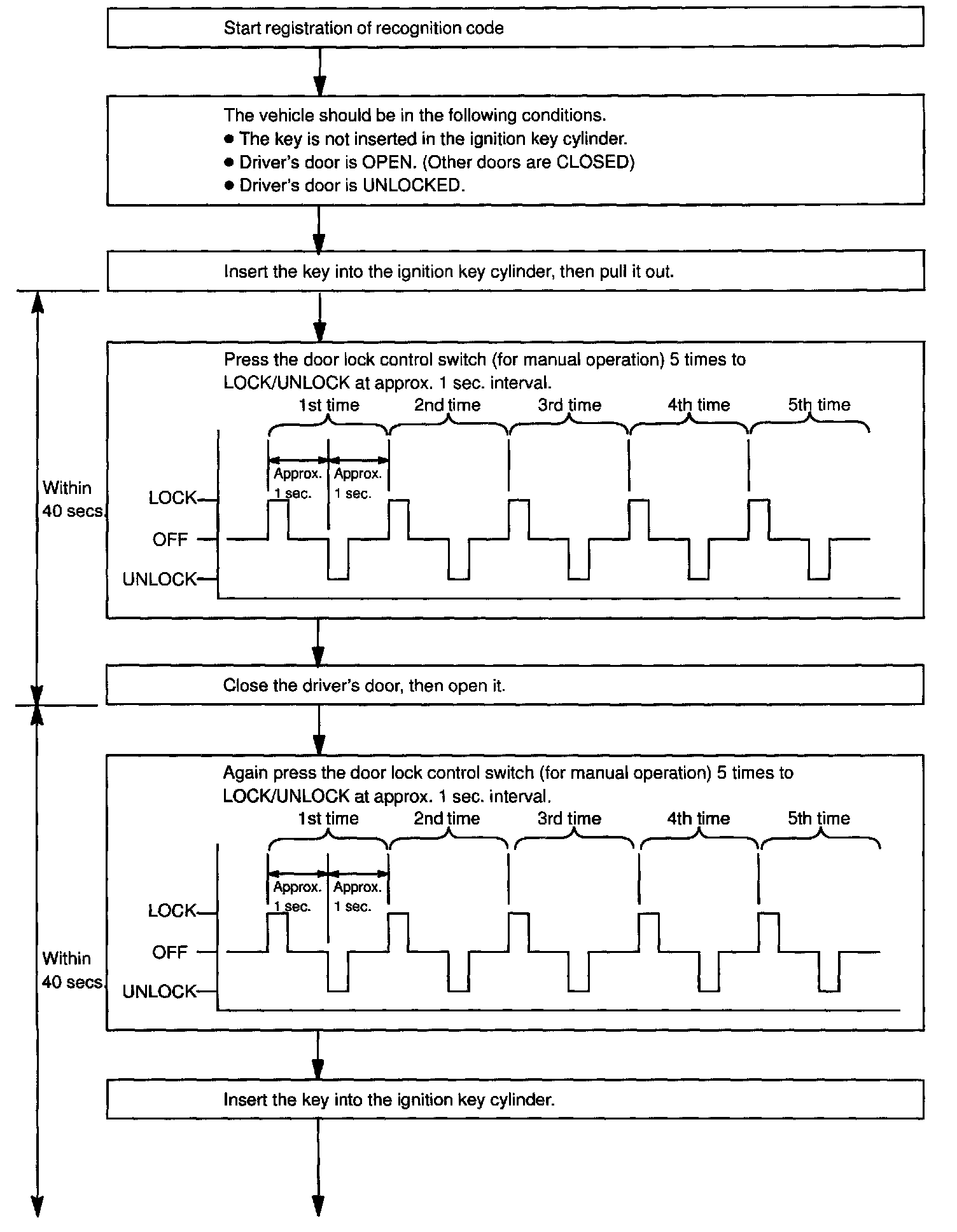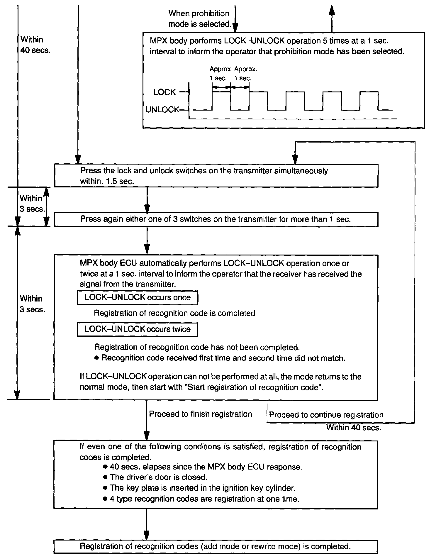b. Follow the chart to register the transmitter recognition code at the wireless door lock control receiver.