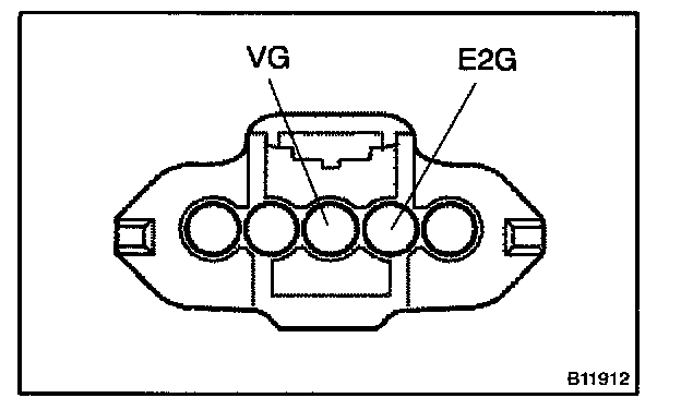 d. Using a voltmeter, connect the positive (+) tester probe to terminal VG, and negative (-) tester probe to terminal E2G.