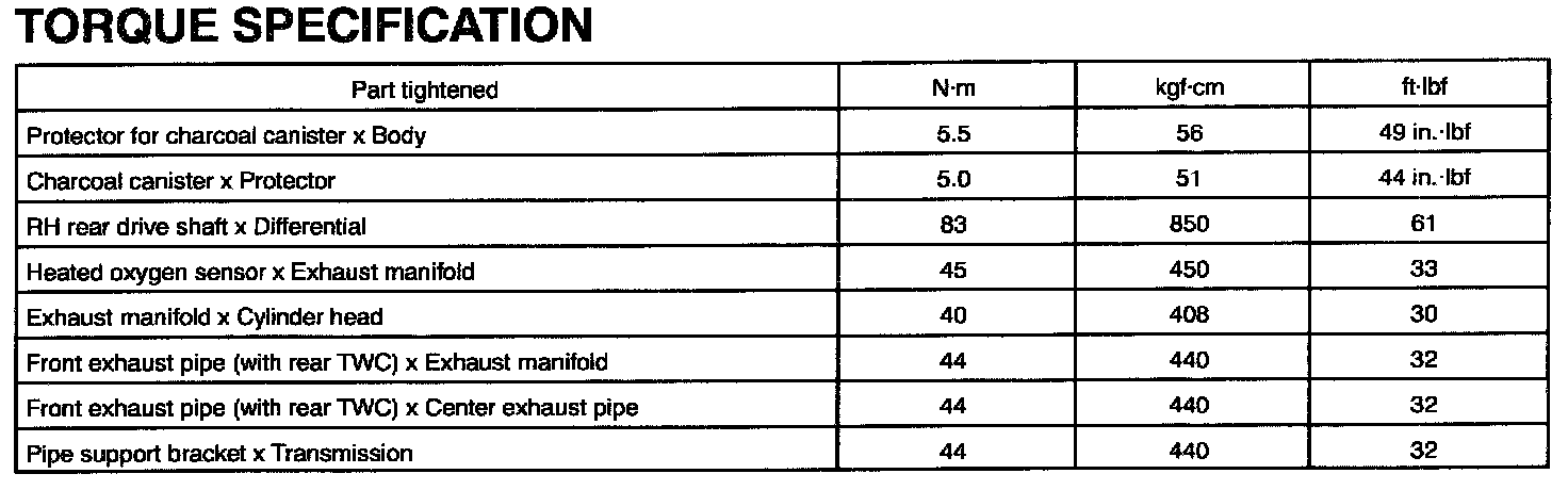 Torque Specification: