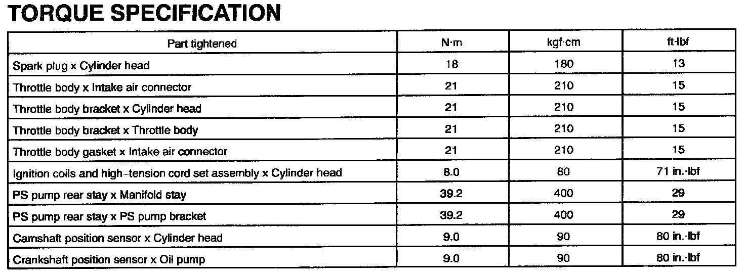 Torque Specification:
