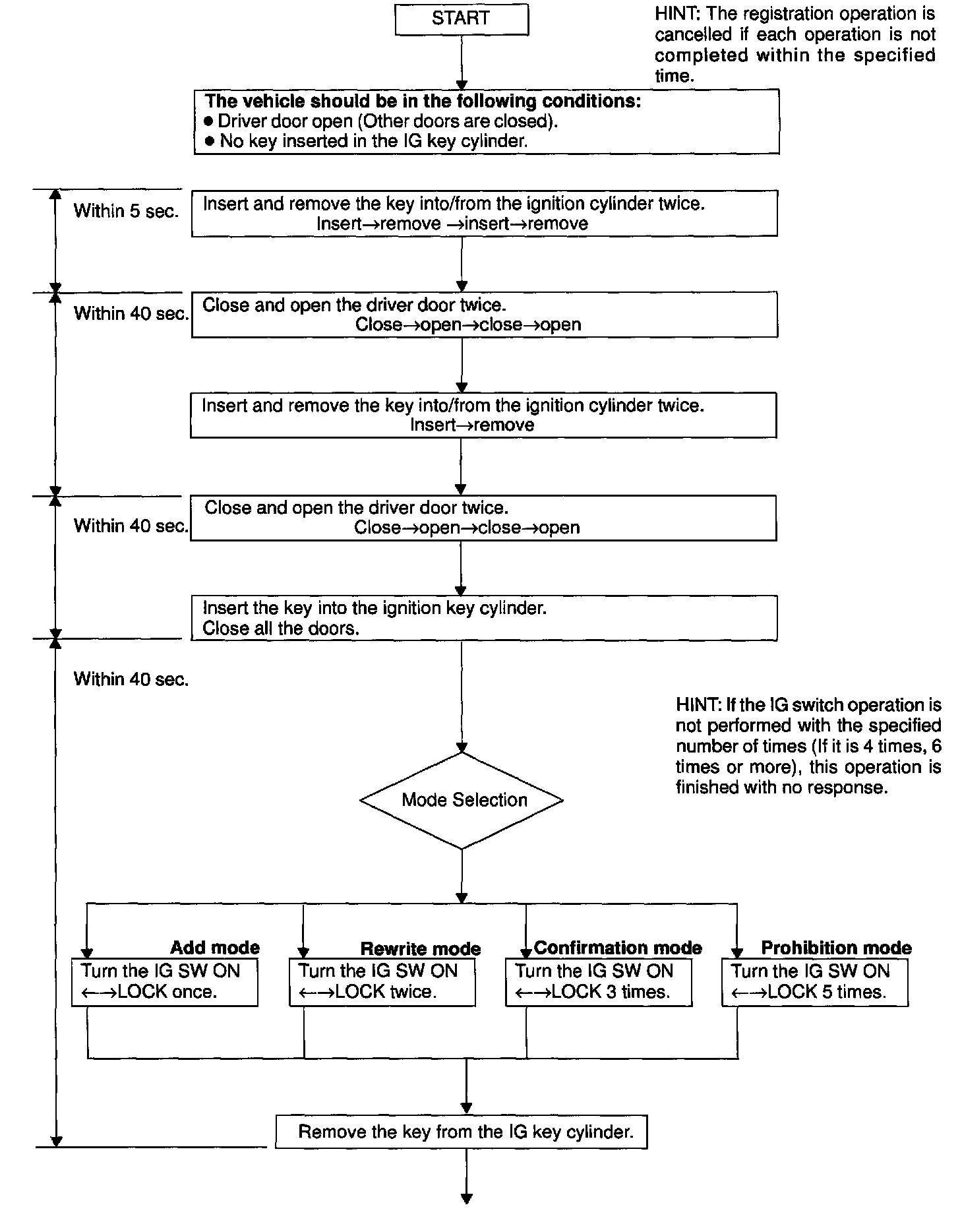 b. Follow the chart to register the transmitter recognition code to the theft deterrent ECU.