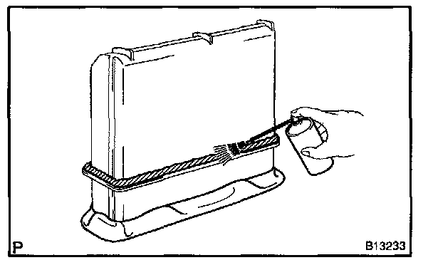 b. Spray the gasket remover or equivalent on the remaining tape of the gasket.
