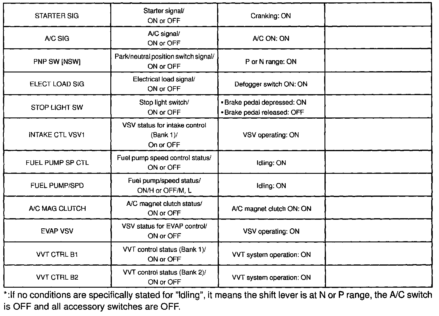 HINT: According to the DATA LIST displayed by the OBD II scan tool or hand-held tester, you can read the value of the switch, sensor, actuator and so on without parts removal. Reading the DATA LIST as a first step of troubleshooting is one of the method to shorten the labor time.