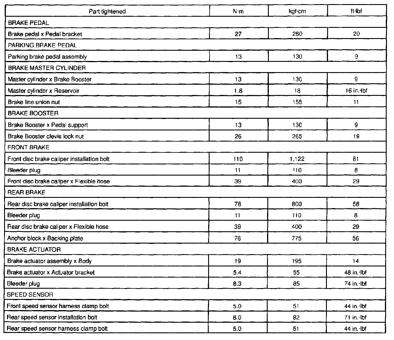 Torque Specifications