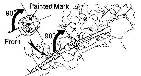 Note: Mark the front of the cylinder head bolt head with paint. Retighten the cylinder head bolts by 90° in the numerical order shown. Check that the painted mark is now at a 90° angle to front.