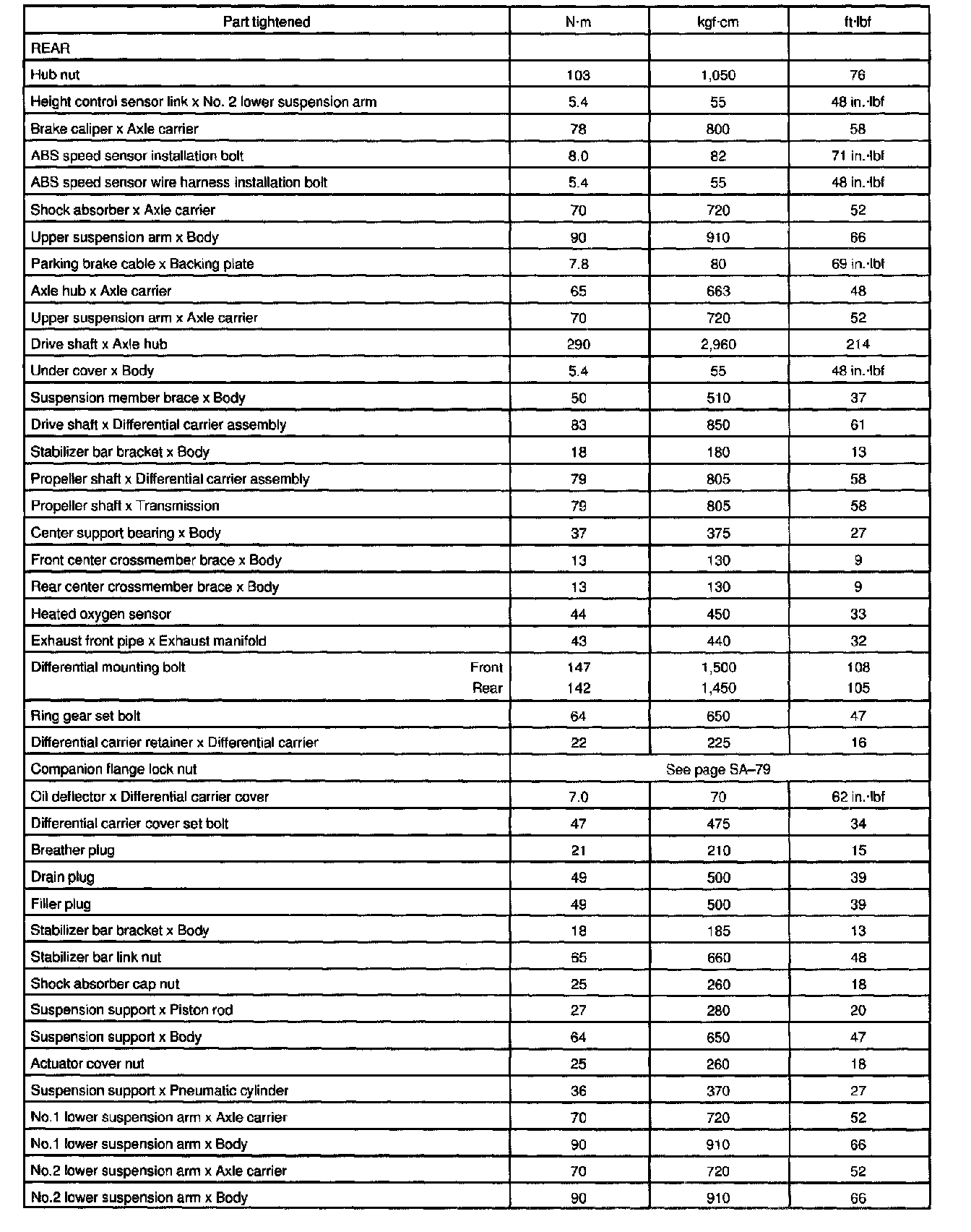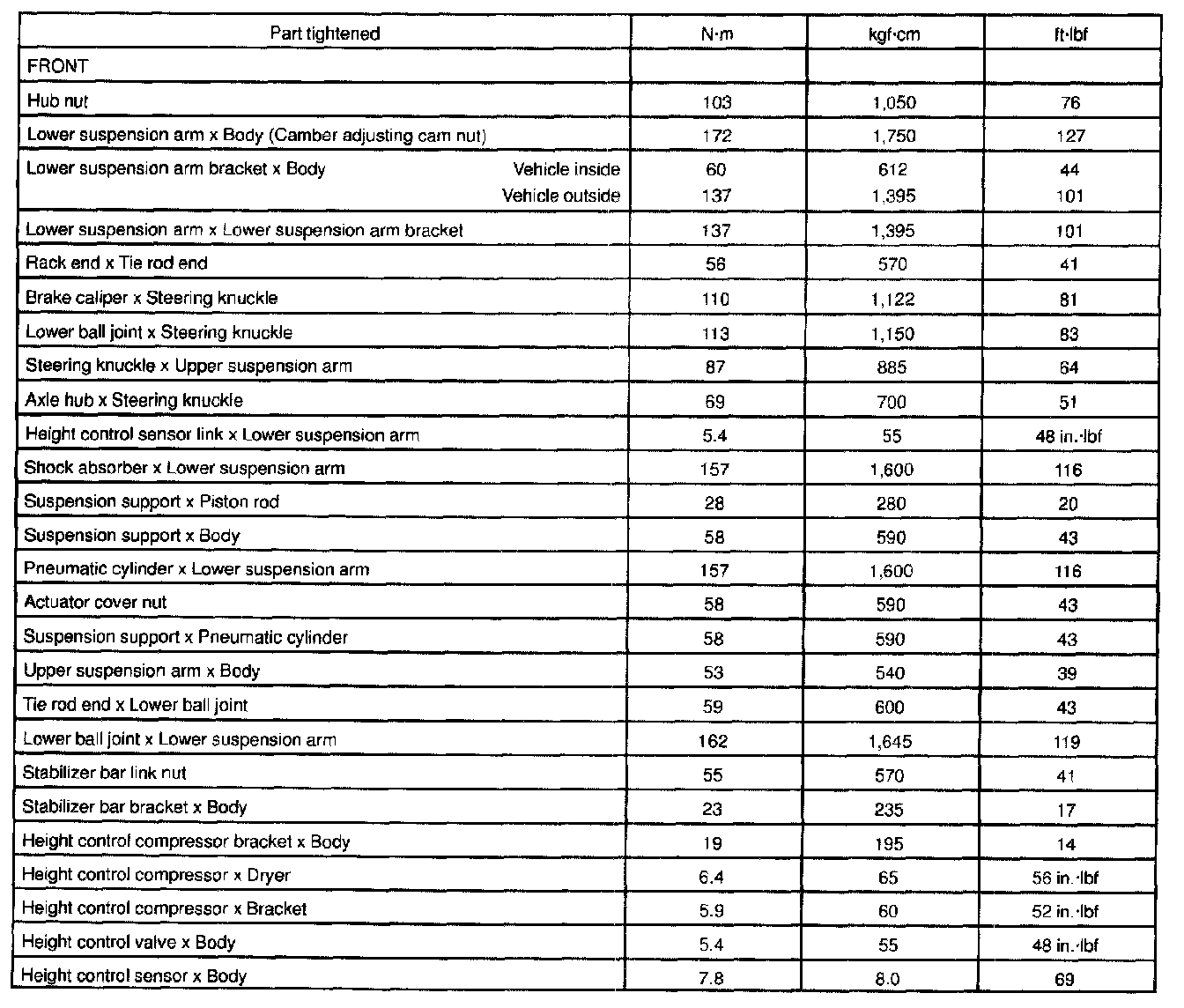 Torque Specification
