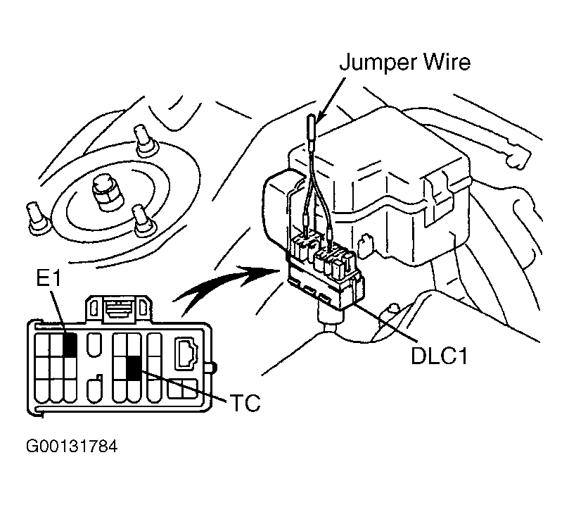 3. Install Jumper Wire (SST 09843-18020) between terminals TC and E1 on DLC1 located near driver's side strut tower. See Fig 3. Apply parking brake. Place transmission in Neutral. Start engine and allow engine to idle.