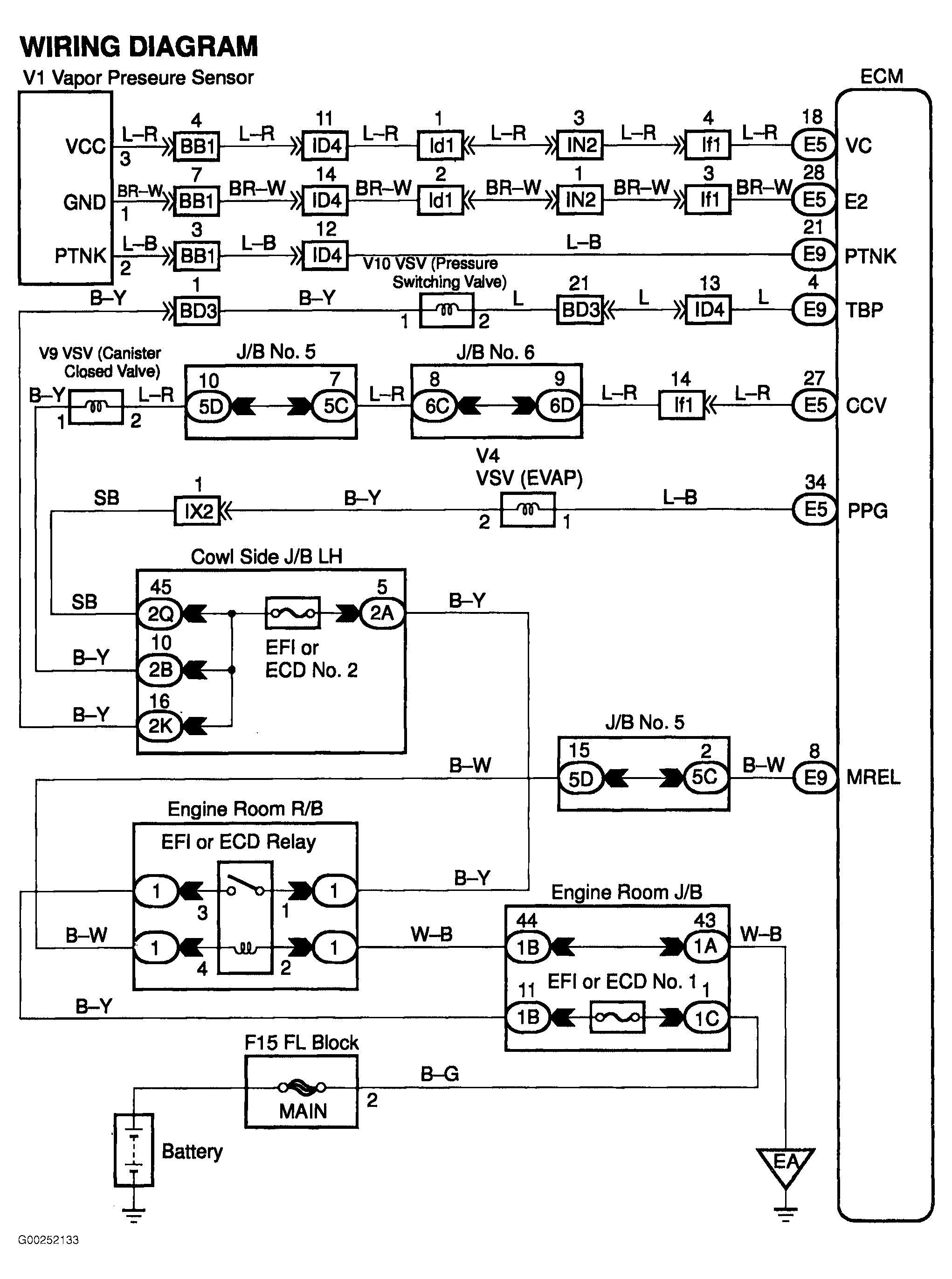 For ECM location, see Figure. For ECM connector terminal view, see Figure. For EVAP system circuit wiring diagram, see Figure. For location of emission related components, see Figure.