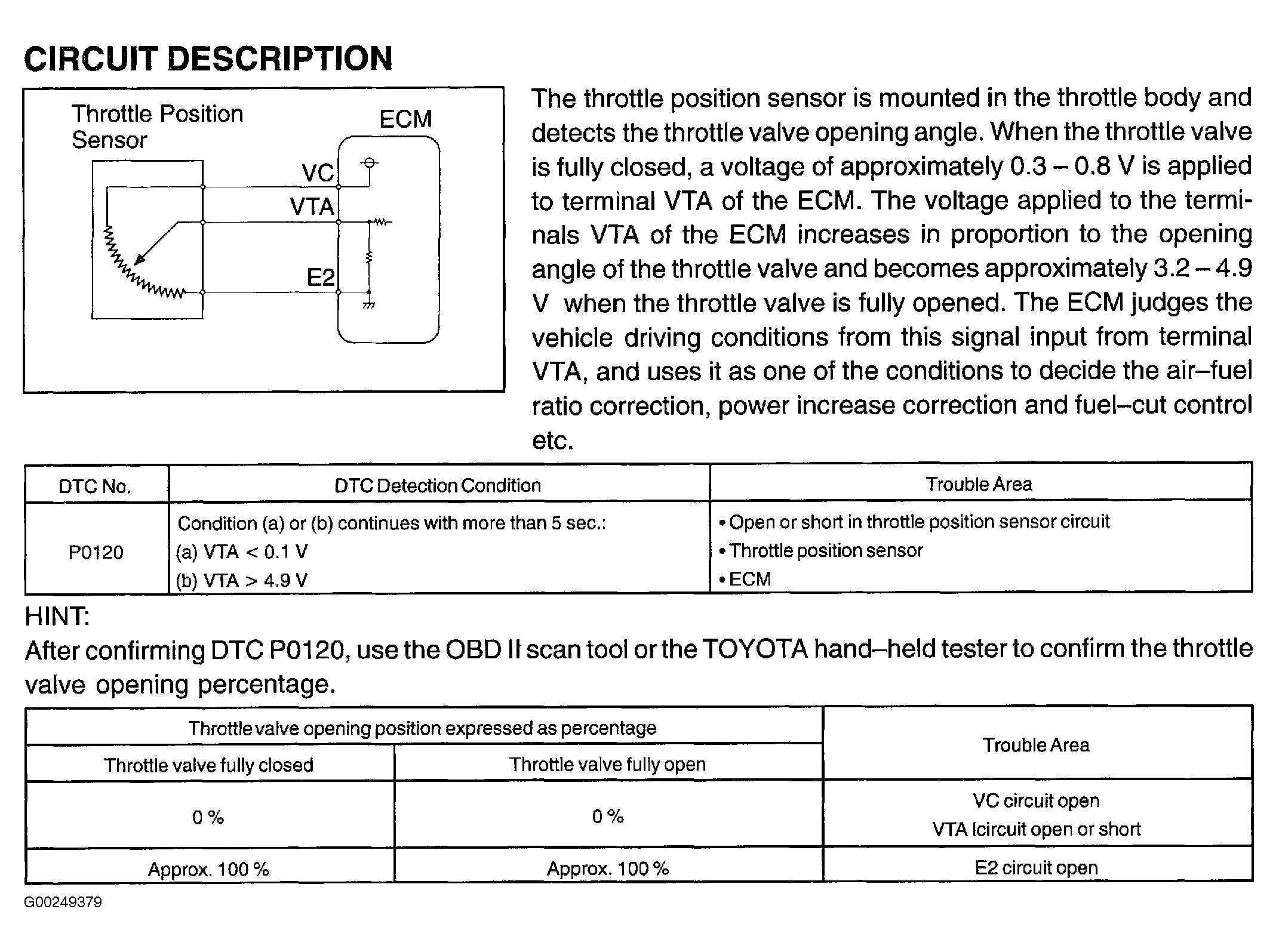 Home >> Lexus >> 2003 >> LS 430 >> Repair and Diagnosis (Single Page) >> External Pages >> Different car >> Section 118 (Engine Control System Self Diagnostics) >> Diagnostic Tests >> DTC P0120: Throttle/Pedal Position Sensor/Switch "A" Circuit (M/T) >> Circuit Description & Possible Causes