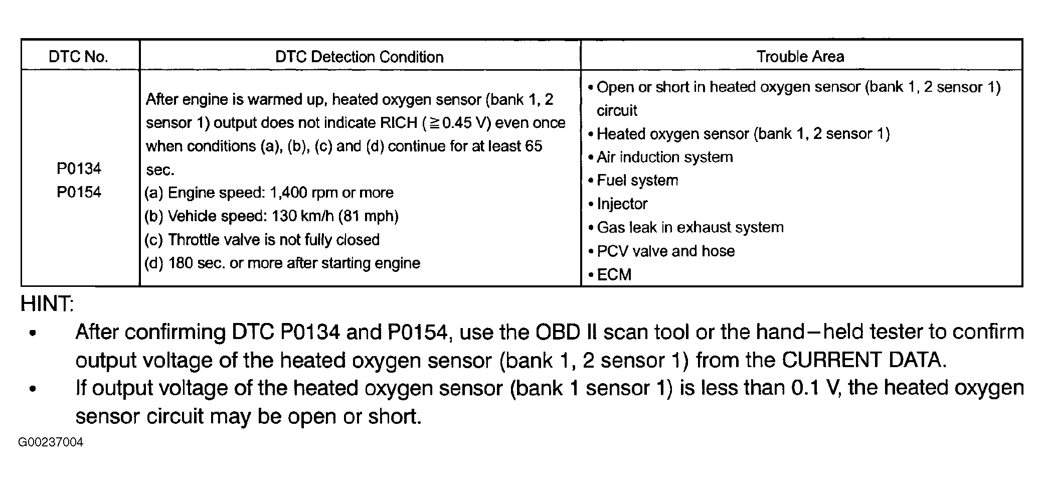 These DTCs use two-trip detection logic. For DTC detection conditions and possible causes see Fig 1.