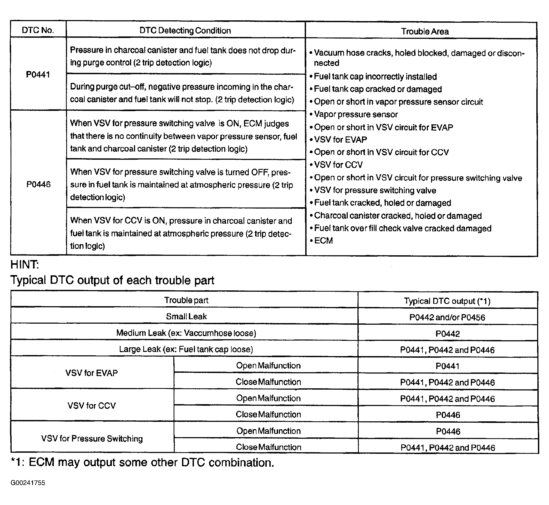 For DTC detection conditions and possible causes, see Fig 1.