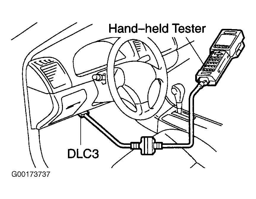 Connect the hand-held tester to DLC3. See Figure. Check the control switch (MAIN, CANCEL, SET/COAST and RES/ACC).