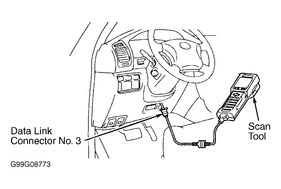OBD-II regulations (SAE J-1962) standardizes configuration of Data Link Connector (DLC) No. 3. DLC No. 3 is located at driver's side of instrument panel. See Fig 1.