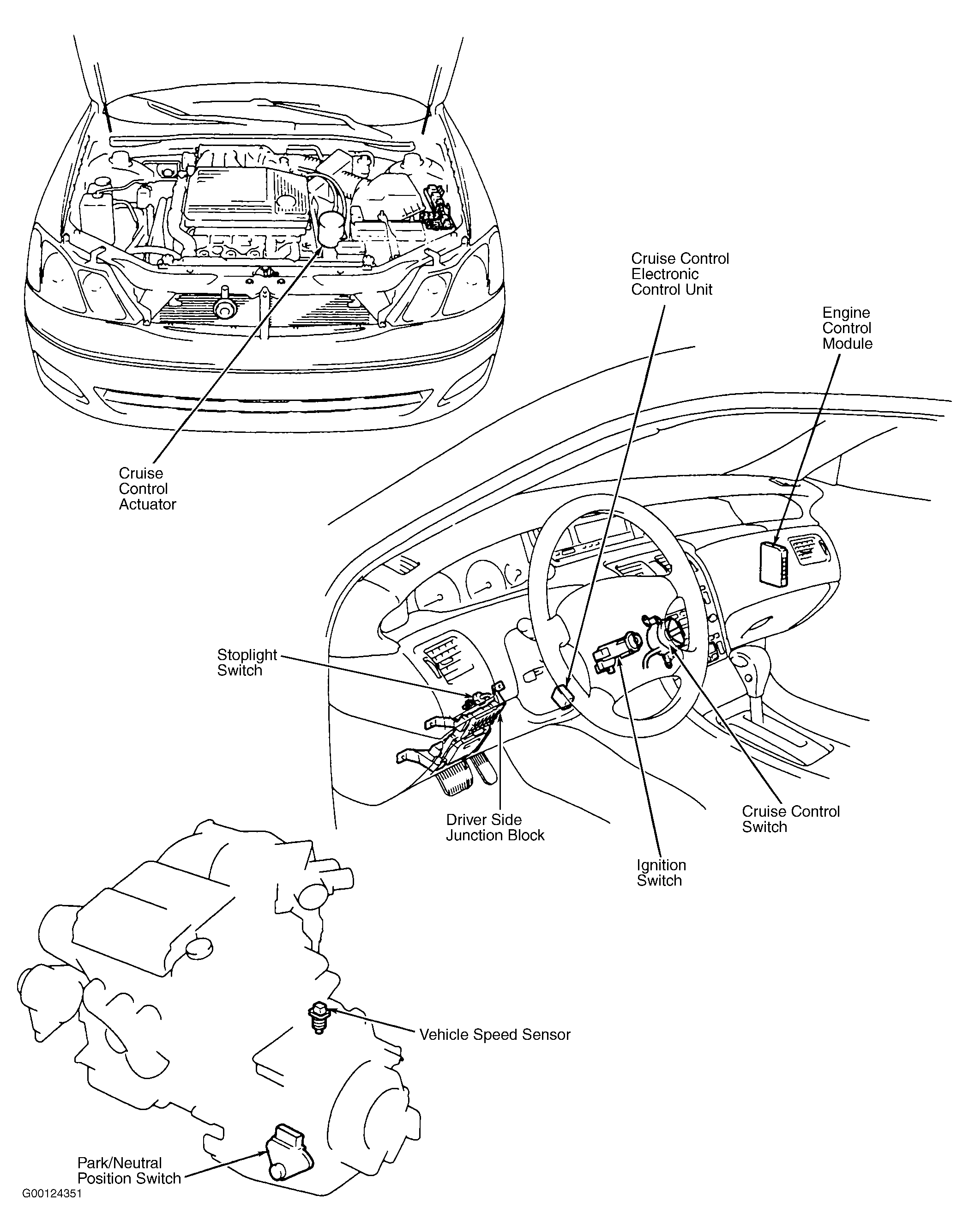 - Perform park/neutral position switch input signal check. See STEP 3 of Cruise Control Input Signal Check. See Figure. If park/neutral position switch input signal is not as specified, go to next step. If input signals are as specified, no problem is indicated at this time. Fault may be intermittent, go to step 11.