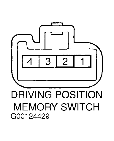 Turn ignition off and disconnect driving position memory switch 4-pin electrical harness connector. Remove driving position memory switch. Using an ohmmeter, check continuity of driving position memory switch terminals. See Fig 1. See DRIVING POSITION MEMORY SWITCH CONTINUITY table. If continuity is not as specified, replace driving position memory switch. See DRIVING POSITION MEMORY SWITCH under REMOVAL & INSTALLATION.