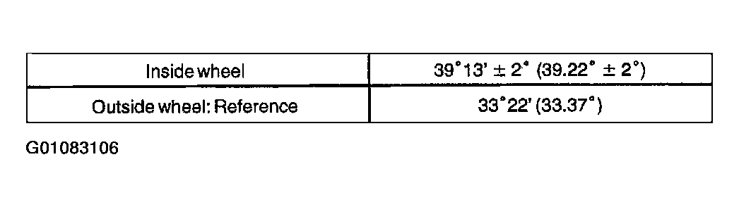 If the right and left inside wheel angles differ from the specified value, check the right and left rack end lengths.