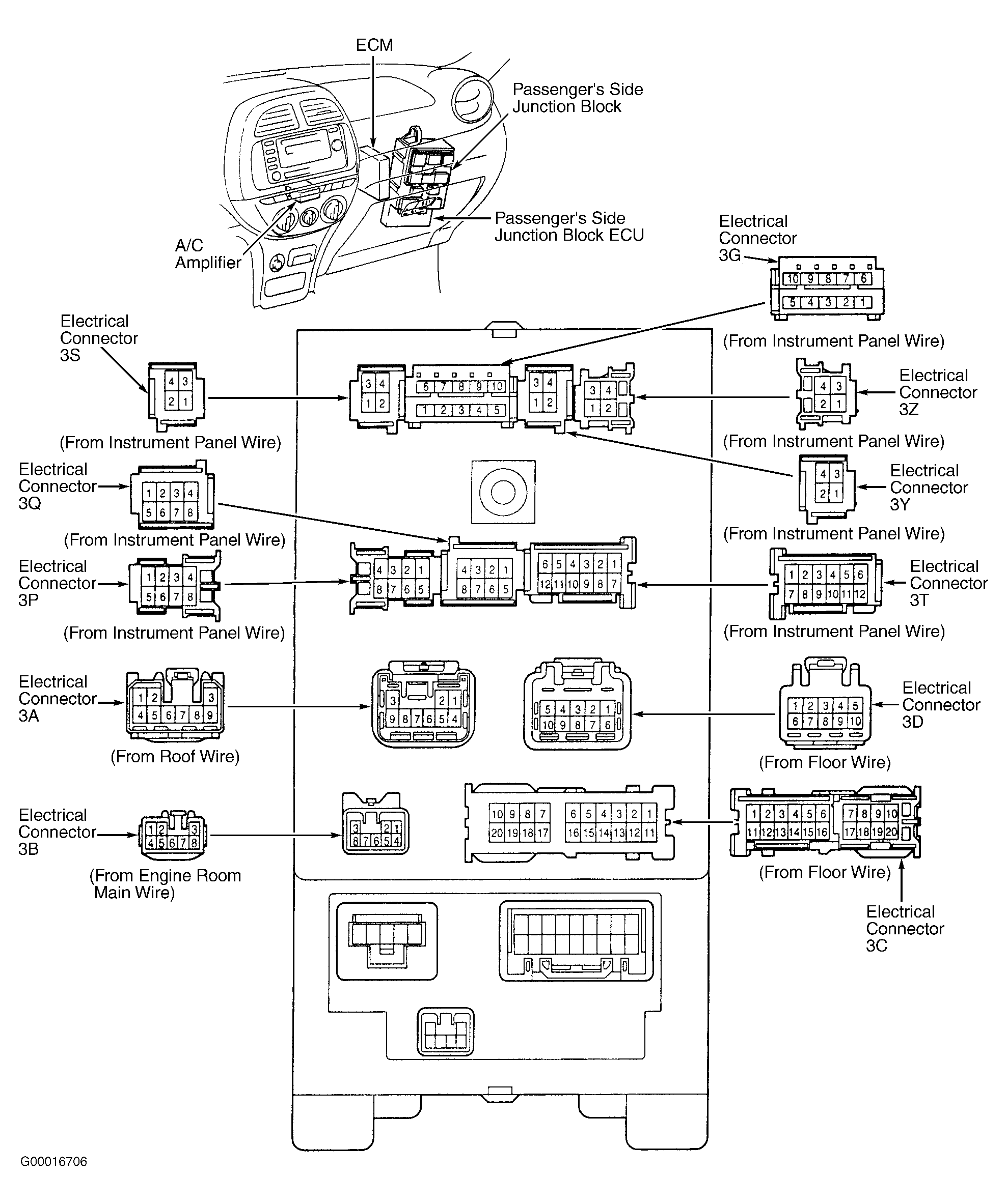 - Remove glove box for access to Engine Control Module (ECM). ECM is located near passenger's side kick panel, just below instrument panel. For illustration of ECM location, see THEORY & OPERATION article. Note terminals on ECM electrical connector. See Figure.
