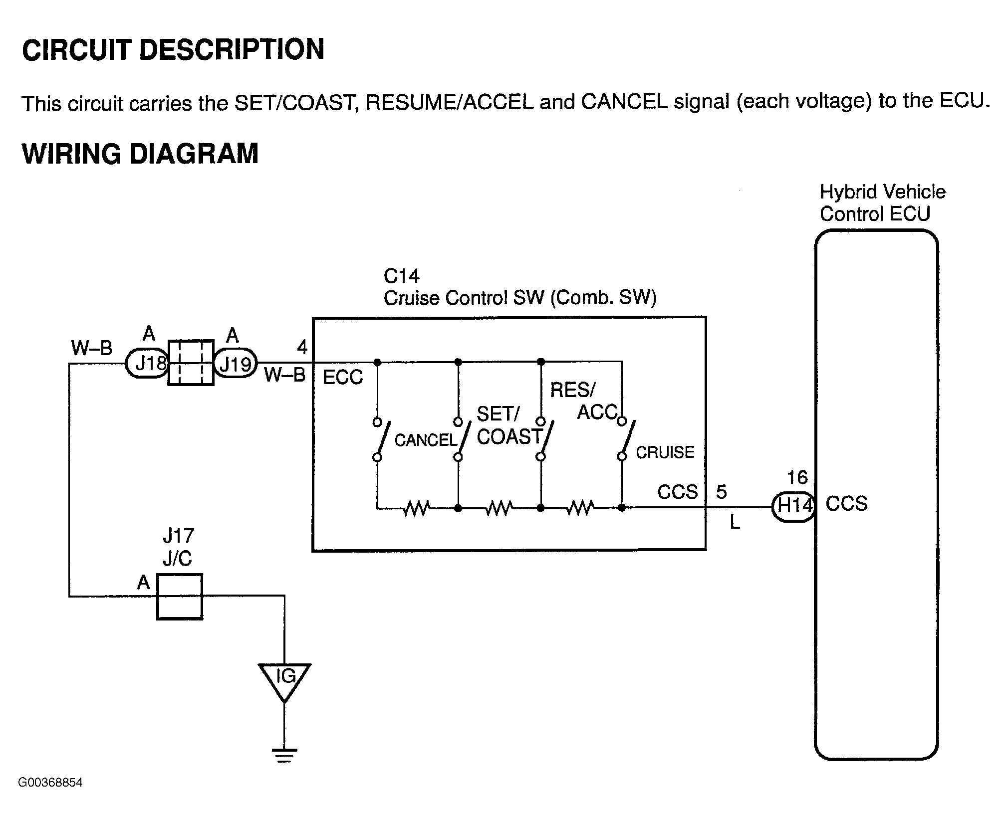For Main switch circuit testing procedure, see Fig 1-Fig 4 . For cruise control switch resistance values, see Fig 5.