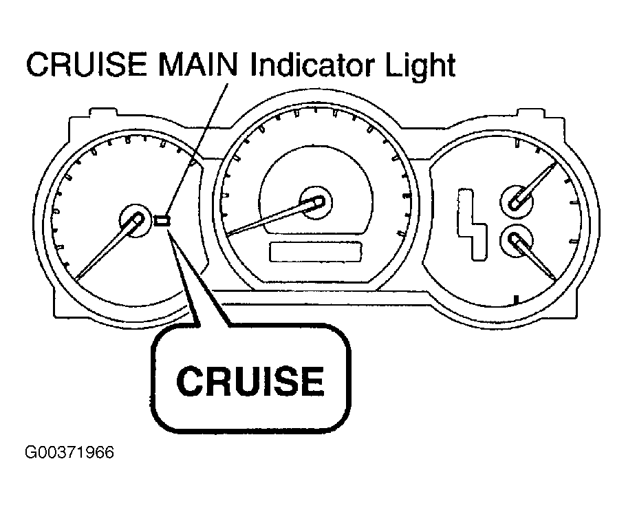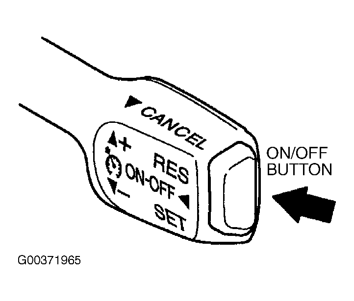 To operate the cruise control, press the "ON-OFF " button. See Figure. This turns the system on. The indicator light in the instrument panel shows that you can now set the vehicle at a desired cruising speed. See Figure. Another press will turn the system completely off.