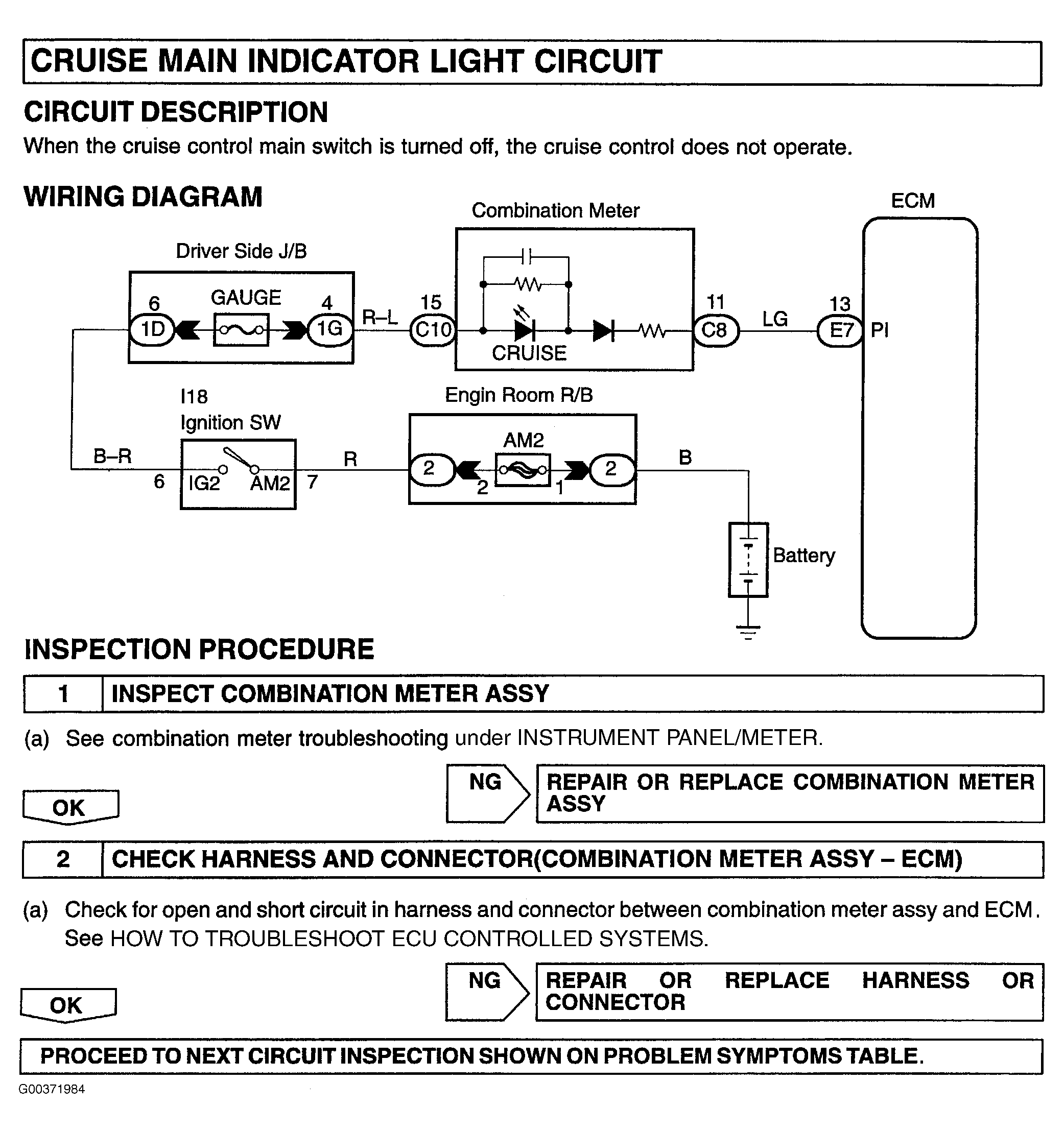 For cruise main indicator light testing procedure, see Fig 1.