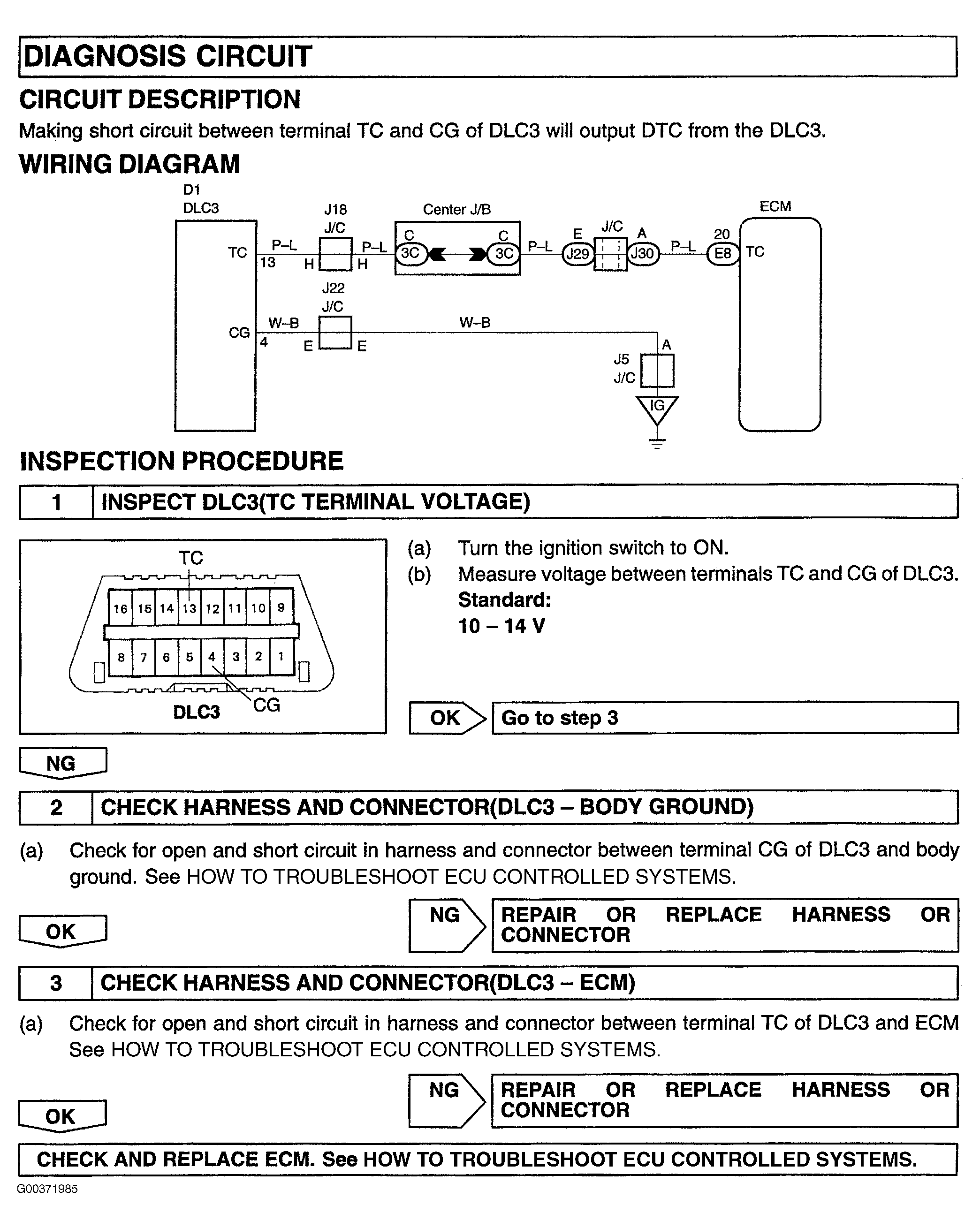 For diagnosis circuit testing procedure, see Fig 1.