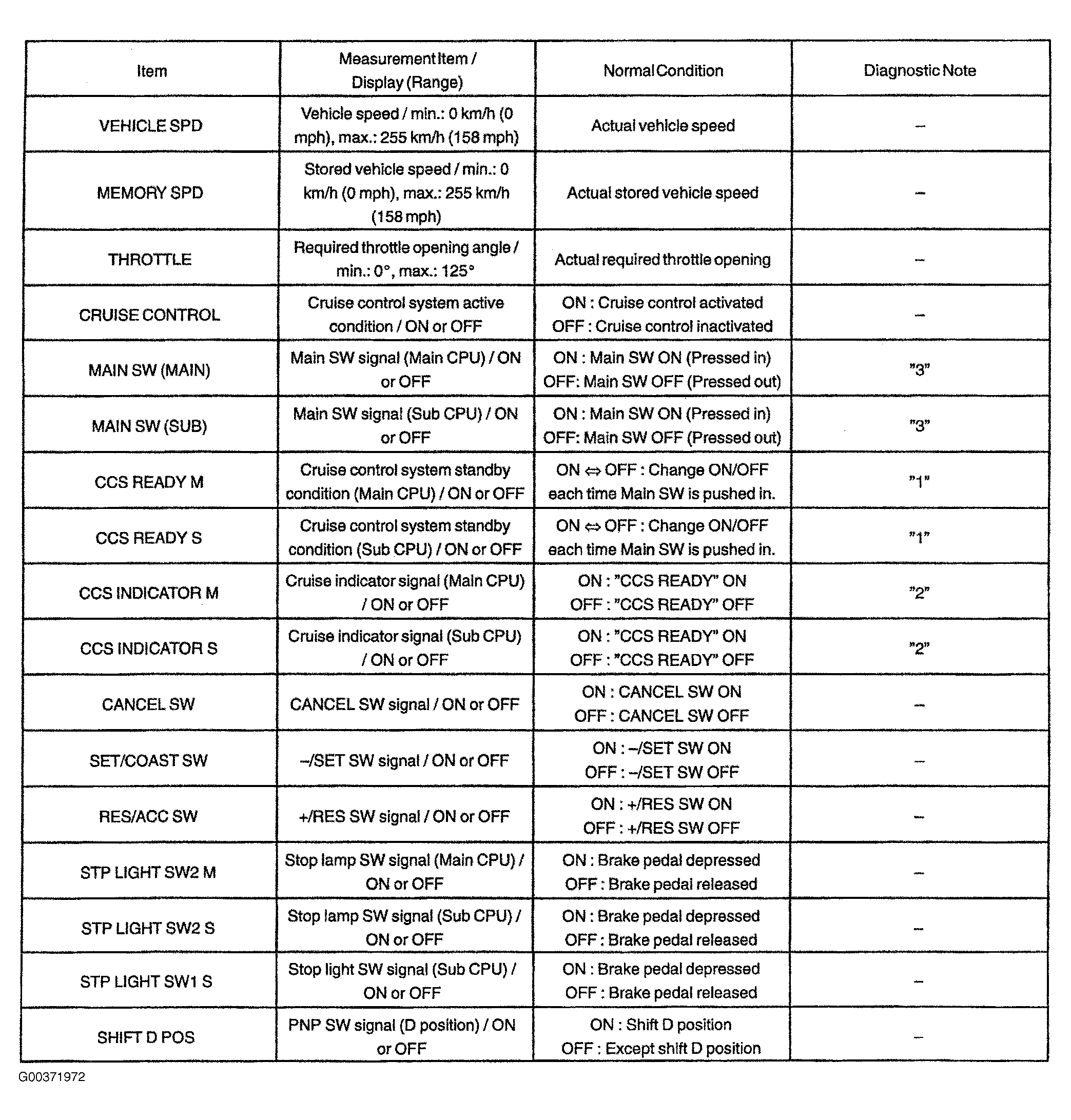 | ..... | Cruise control switch circuit | (1) | ||||||||||||||||