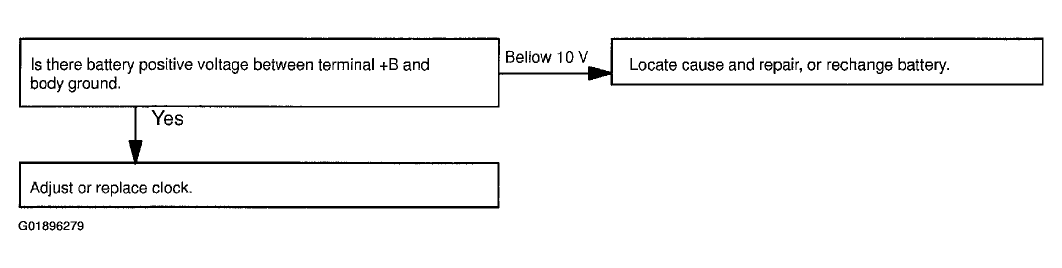 - Check that the battery positive voltage is 10 - 16 V. If voltage is not as specified, replace the battery.