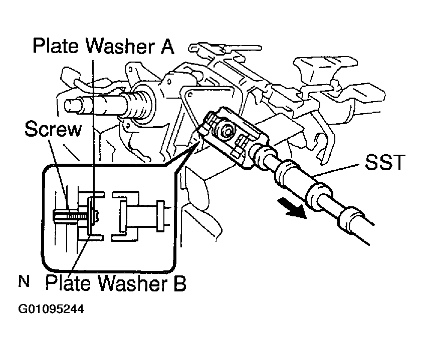 - Using a screw extractor, remove the 2 bolts, column upper bracket and column upper clamp.