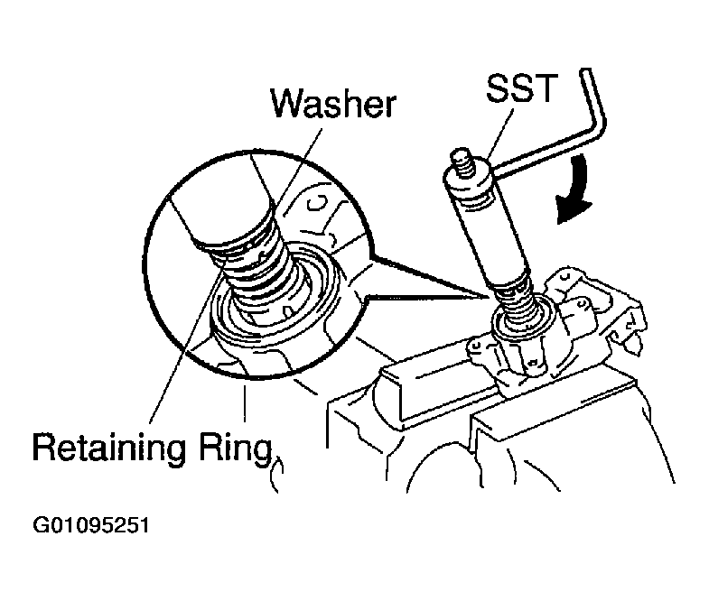 - Using SST, push down the retaining ring until it fits into the shaft groove and install the main shaft assembly.