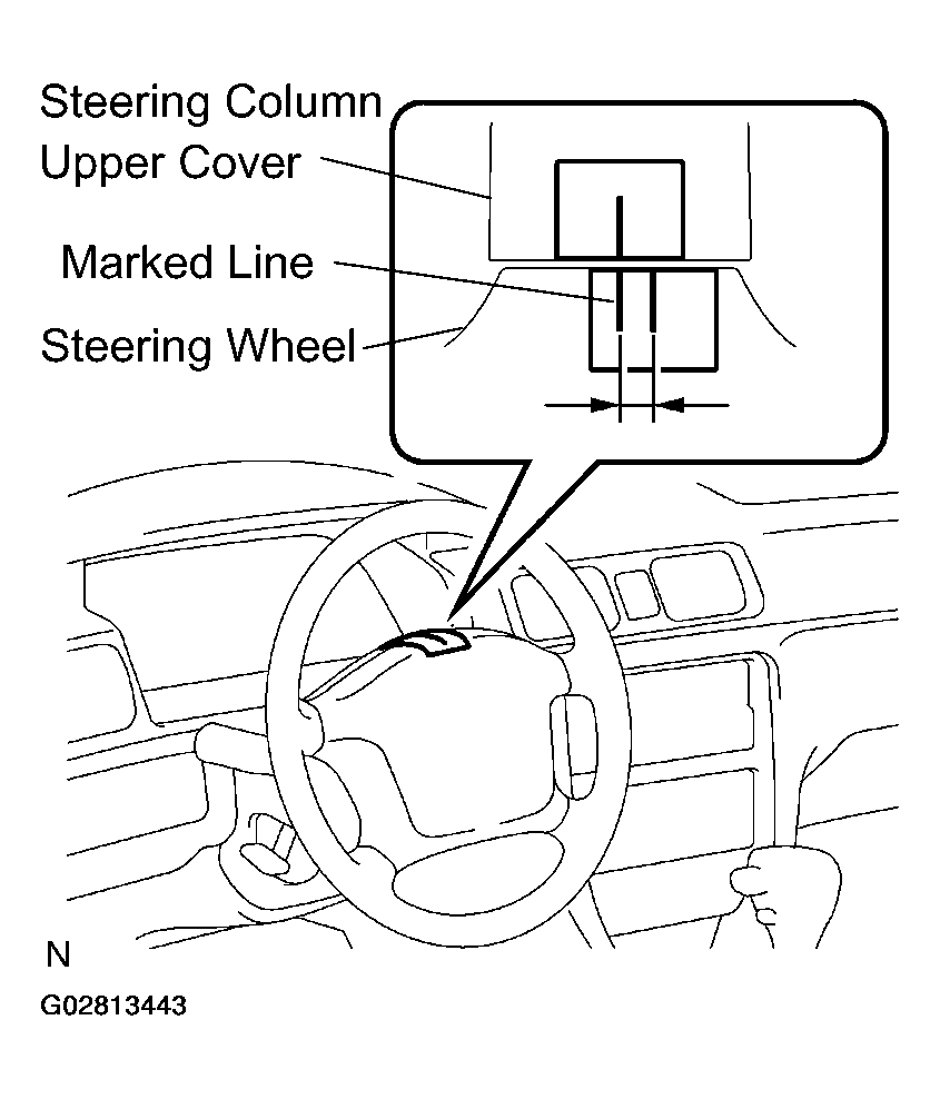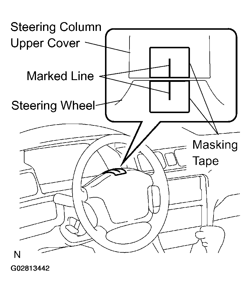- Apply masking tape on the top center of the steering wheel and steering column upper cover.