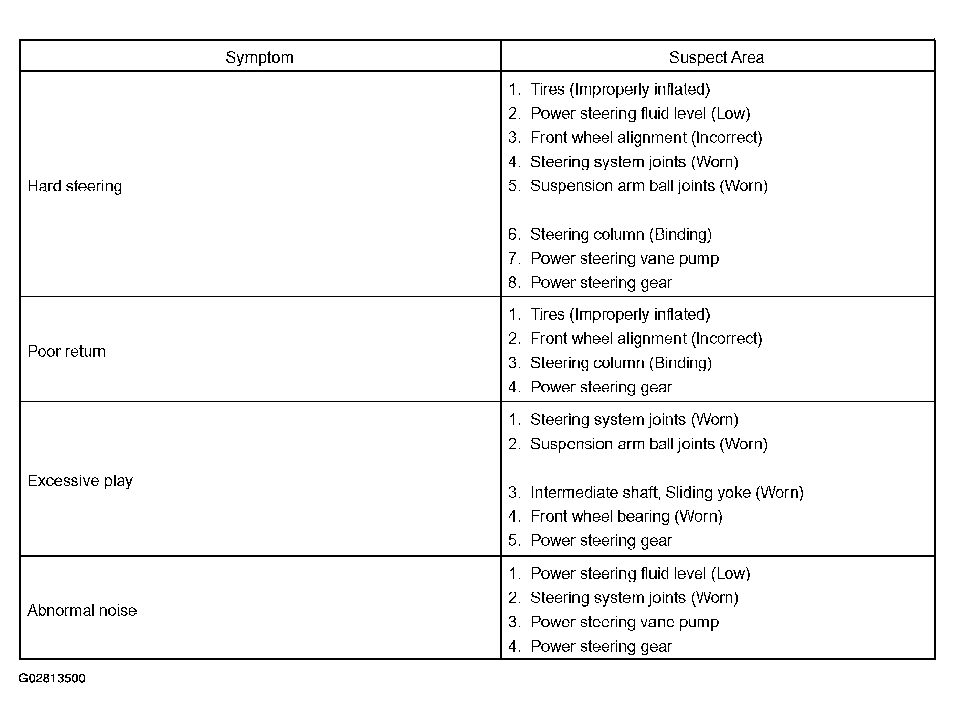 Use Fig 1 to help you find the cause of the problem. The numbers indicate the priority of the likely cause of the problem. Check each part in the order shown. If necessary, repair or replace these parts.