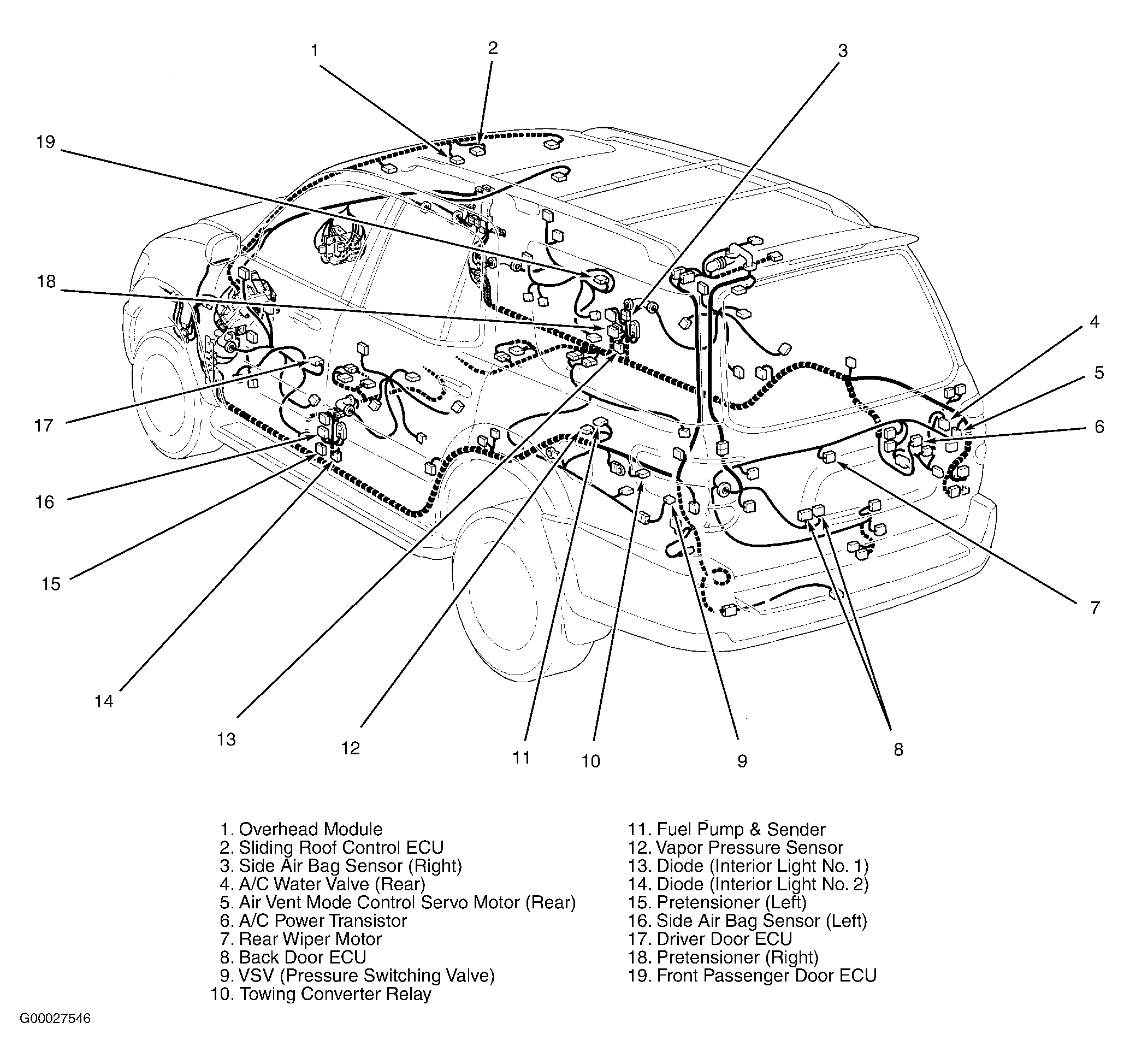 | Sliding Roof Control ECU | On center front of roof. See Figure. |