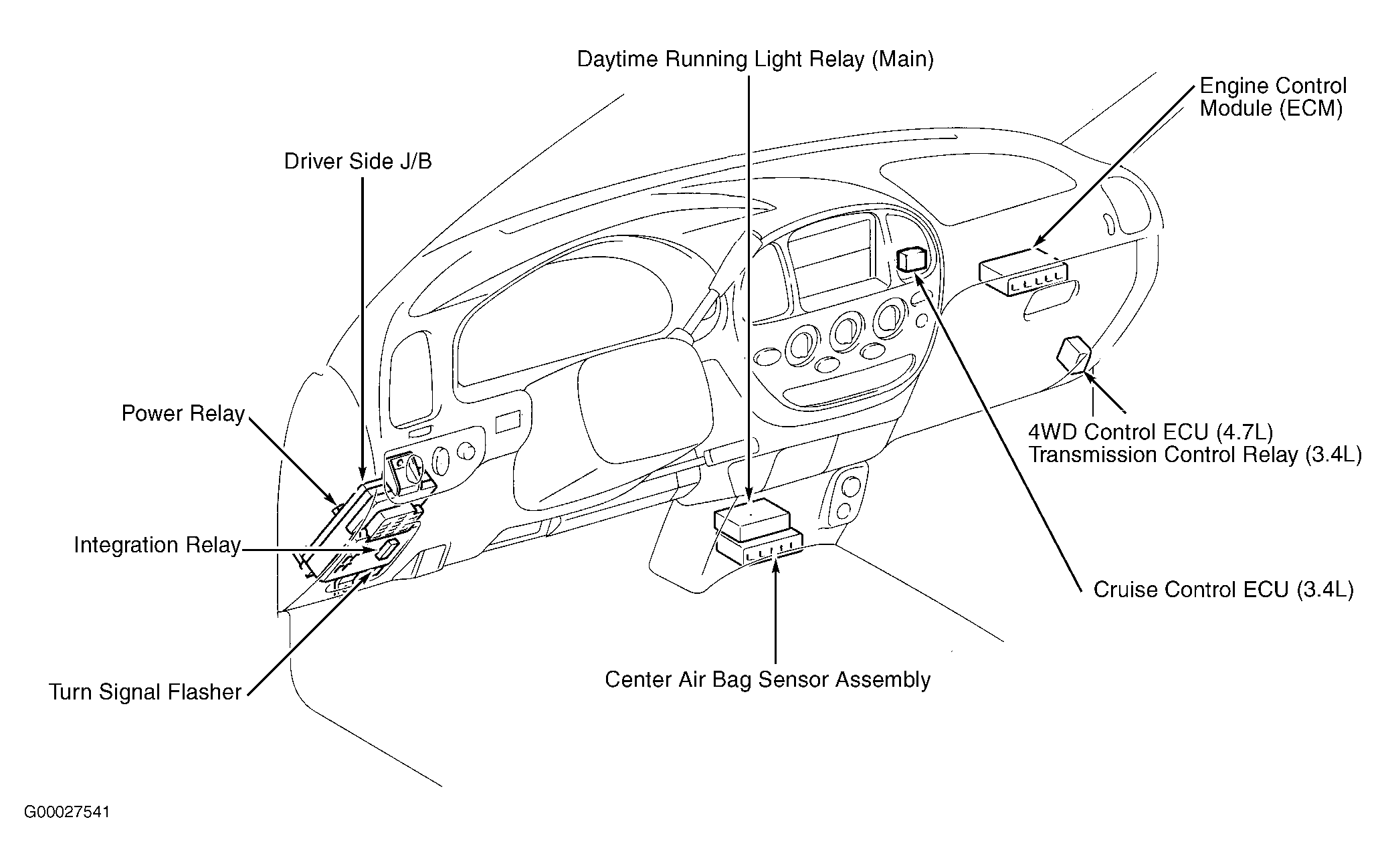 | Driver Side J/B | Behind lower left side of dash. See Figure. |
