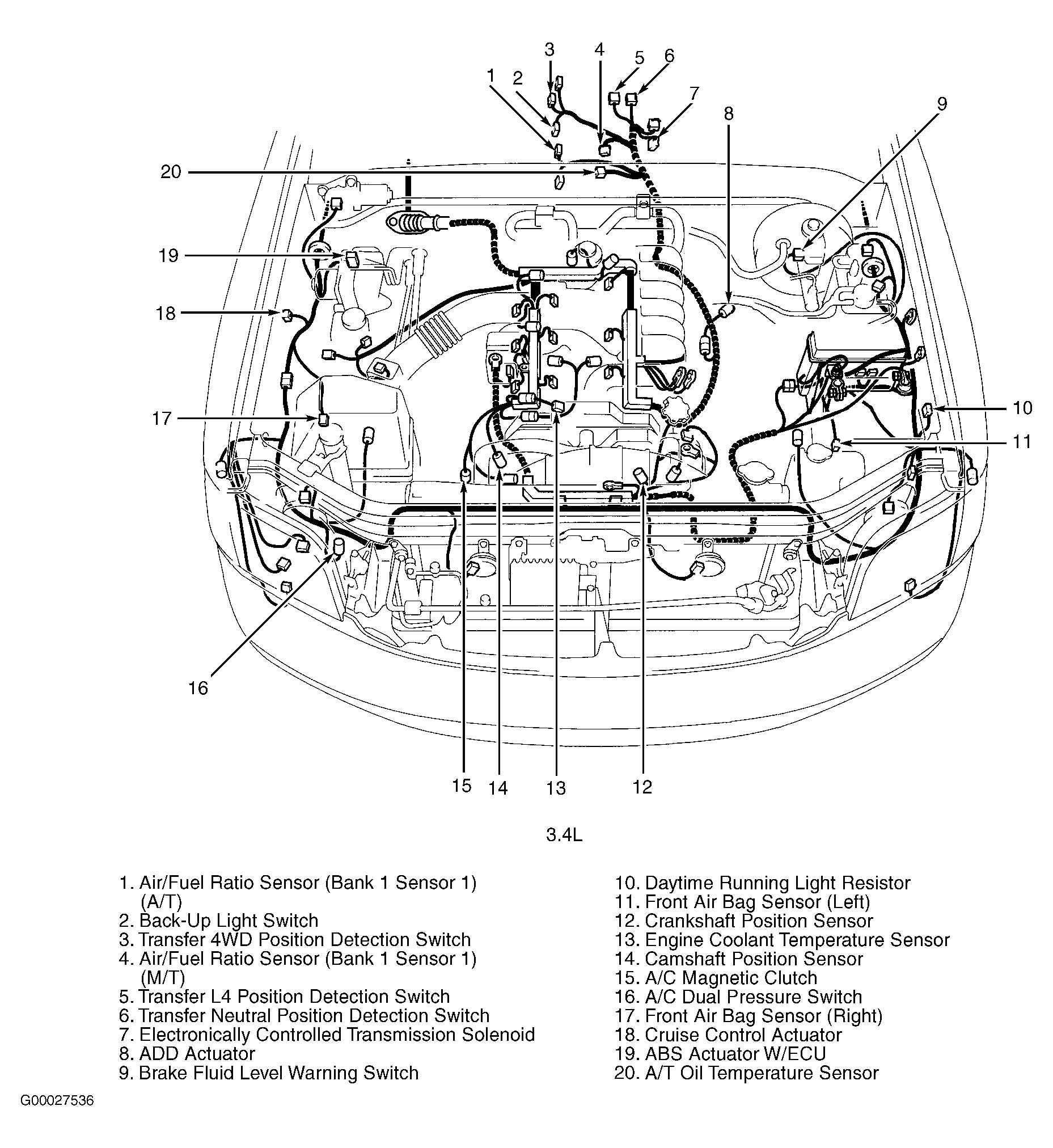 | ABS Actuator W/ ECU (3.4L) | In right rear corner of engine compartment. See Figure. |