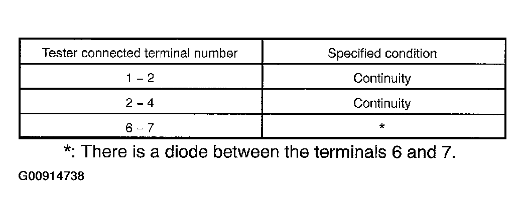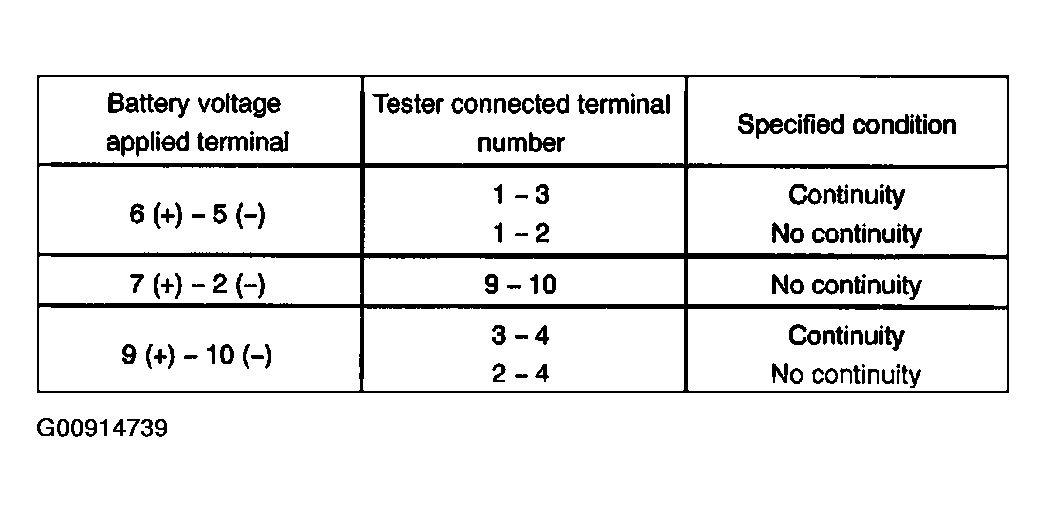 2. Apply battery positive voltage between each terminal and check that continuity exists between each terminal, as shown in Fig 4 .