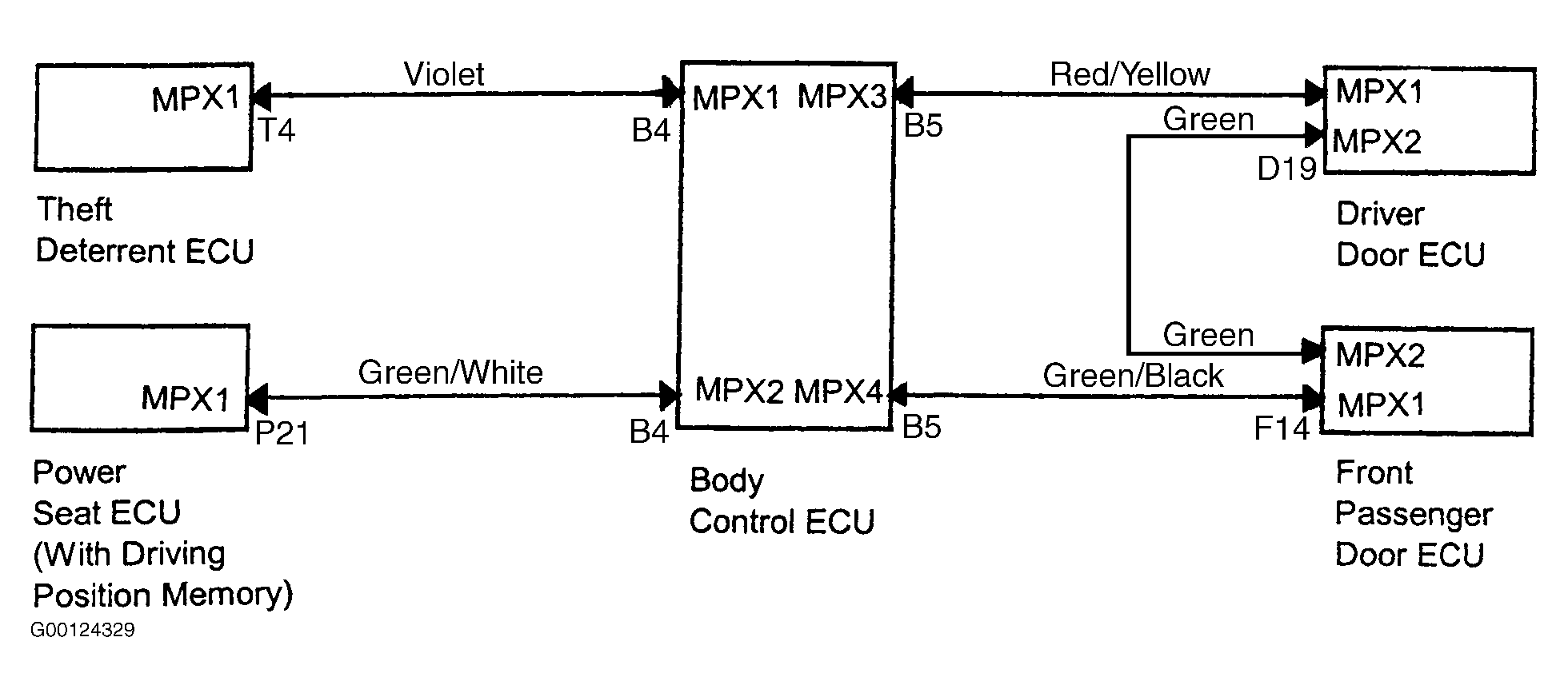 - A DTC would set if an open circuit condition is present on Green/White wire or Violet wire. These are single circuits for communication with theft deterrent ECU and power seat ECU (with driving position memory).