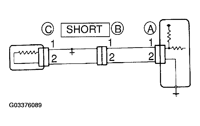 Therefore, it is found out that there is a short circuit between terminal 1 of connector "A" and terminal 1 of connector "C".