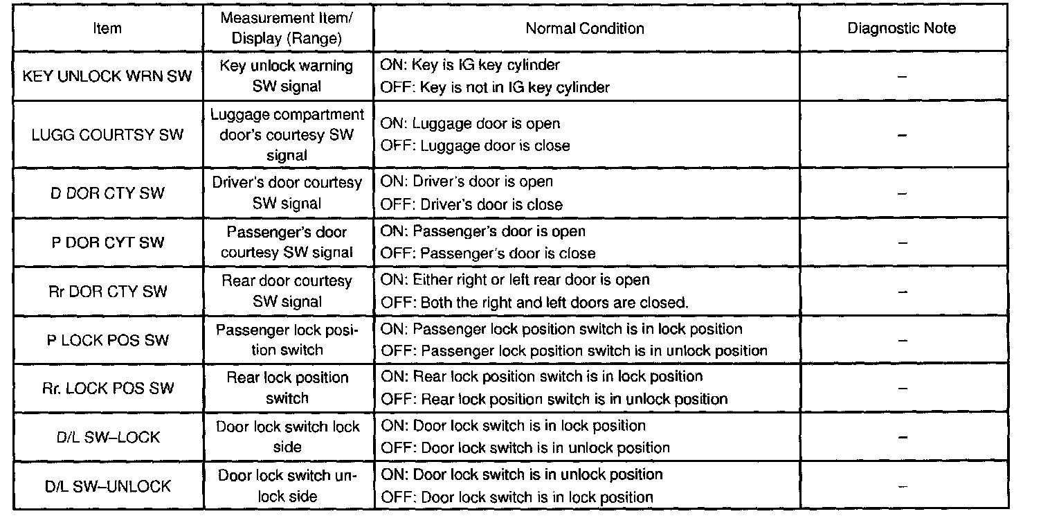 DATA LISTHINT: By the DATA LIST displayed on the hand-held tester, you can read the value of the switch, sensor, actuator and so on without removing any parts. Reading the DATA LIST as a first step of troubleshooting is one of the method to shorten the labor time.