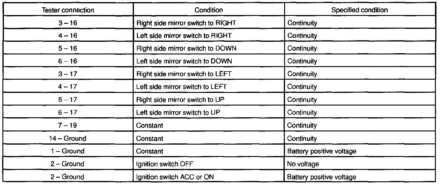 If the operation is not as specified, inspect the wire harness and mirror switch or motor assembly. Then if these are correct, replace the ECU.