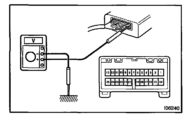 Connect the connectors and using a voltmeter with high impedance (10 kohms/V minimum), measure the voltage at each terminal and body ground.