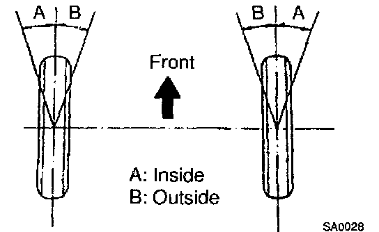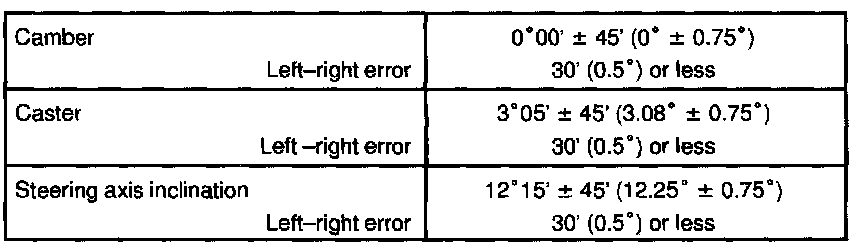 If the steering axis inclination is not within the specification, after the camber and caster have been correctly adjusted, recheck the steering knuckle front wheel for bearing or looseness.