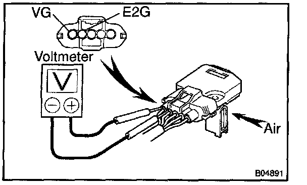 4. Using a voltmeter, connect the positive (+) tester probe to terminal VG and negative (-) tester probe to terminal E2G.